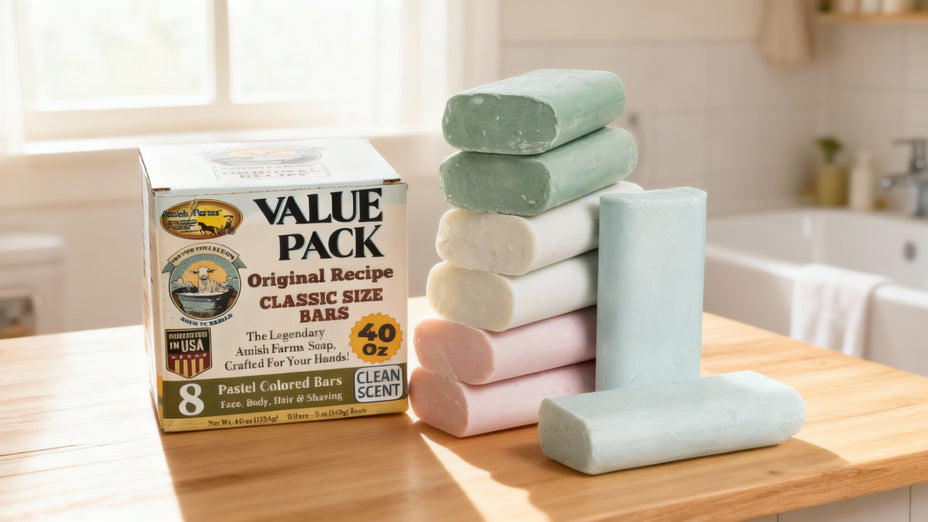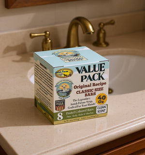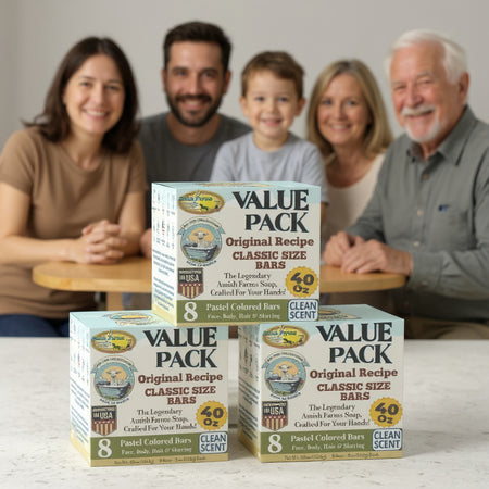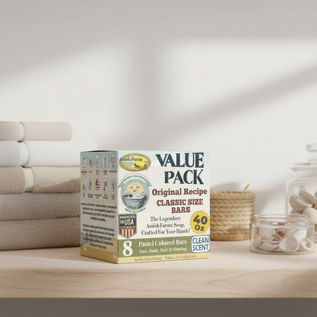 Each Tin Tub Value Pack includes 8 full-size, cold-processed bars crafted to outlast and outperform ordinary soap — all with the same beloved Amish Farms® formula you know and love.